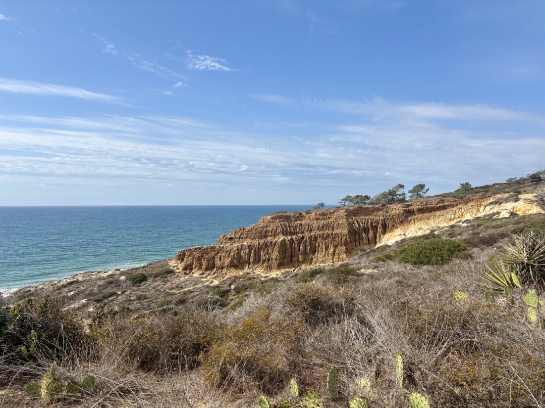 I felt like having a coastal adventure this afternoon, so I decided to hike through Torrey Pines State Park. I found parking along the coast and headed into the park. It was another perfect fall day in San Diego—the sun was shining, and the temperatures were pleasant. I cruised up the trail next to the road until I reached the Guy Fleming Trail, which I had not done in quite a while. I forgot that some of the best views in the park are actually from this trail. I sent a happy birthday message to my niece in Arkansas from one of the side viewpoints before rejoining the main road.
