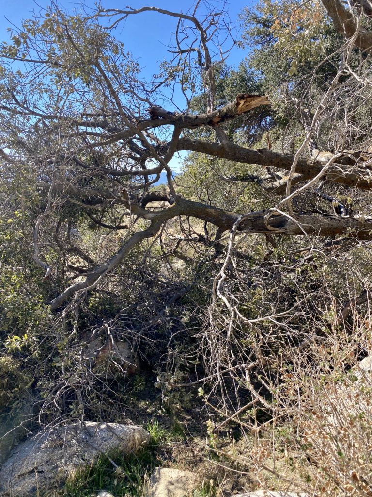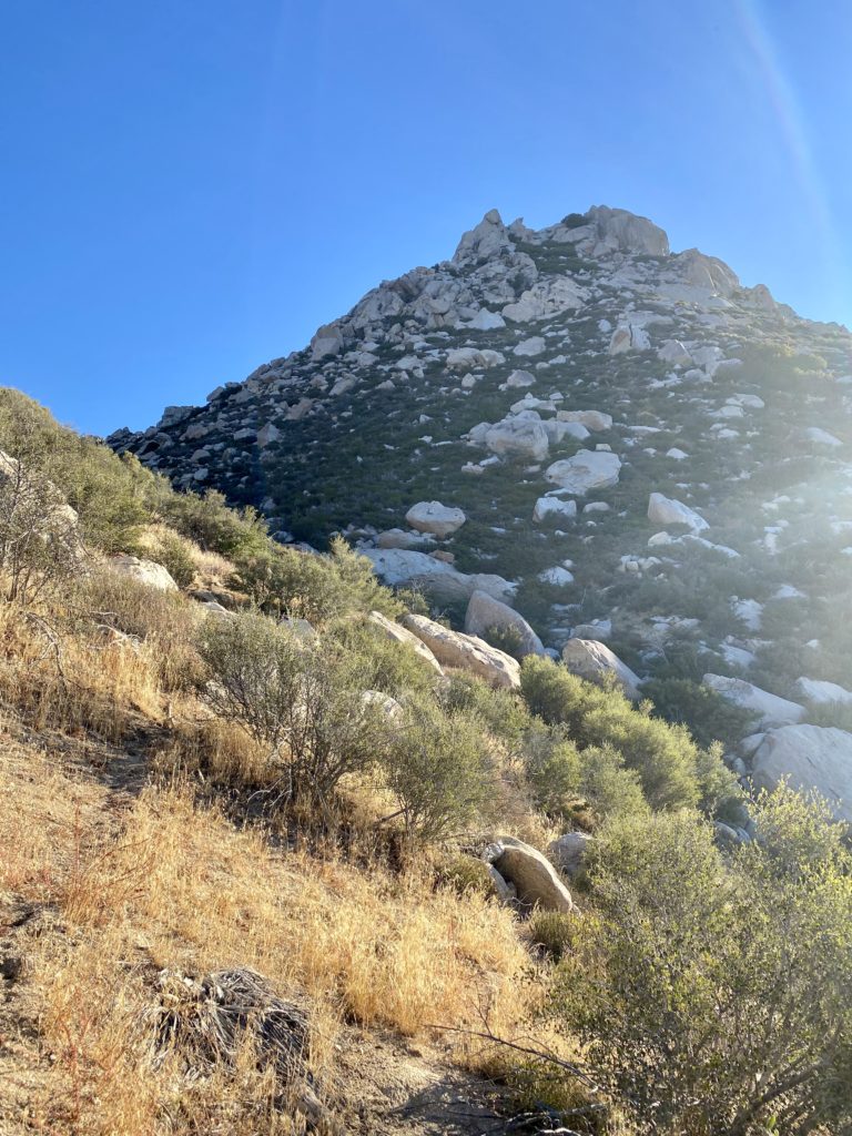 With my peak-bagging friends busy, I set off to climb San Ysidro solo. I had planned to grab breakfast from the Jack In The Box in Ramona, but they were closed. Crud. Thankfully, Don’s Market in Santa Ysabel was open and I was able to grab some food. Just past where the Montezuma Valley Market is, I turned on to the dirt road that would take me to the start of the hike. I parked, grabbed my gear, and set off down the old jeep road. A tree had fallen since the last time had been here, so I had to drop into the stream bed to bypass it.